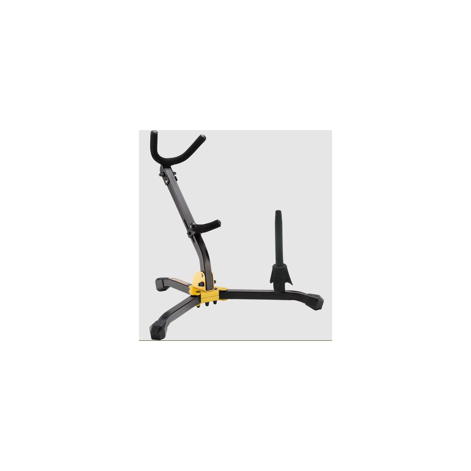The Hercules DS532BB Saxophone and Flute/Clarinet stand features a folding yoke, adjustable backrest, and locking pins to provide the ultimate in security and stability for either Tenor or Alto Saxophone, and has an additional peg for either a Flute or Clarinet