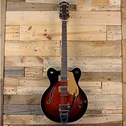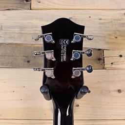 Designed to deliver pure Gretsch sound at high volumes, this double-cutaway Electromatic Center Block with Bigsby tailpiece maintains plenty of warmth and dynamic resonance, thanks to a chambered spruce center block. Dual Black Top Broad’Tron humbucking pickups deliver chiming highs with dynamic and articulate tone for enhanced sonic punch. A versatile control layout consisting of a master volume control with treble bleed circuit, master tone, bridge and neck pickup volume controls and three-position pickup toggle switch offers a flexible range of tonality. The Bigsby B70 tailpiece combines with the anchored Adjusto-matic bridge and self-lubricating GraphTech NuBone nut for shimmery vibrato action that stays in tune. Case sold separately.