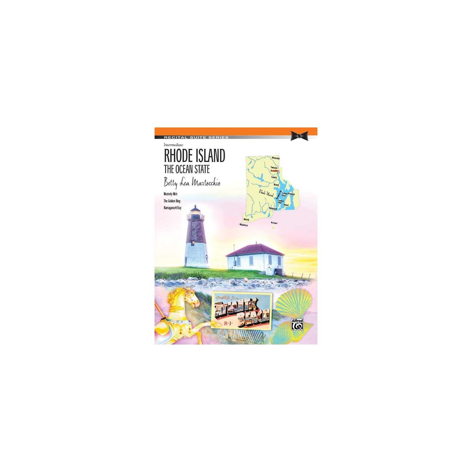 Rhode Island: The Ocean State showcases this East Coast state in three appealing movements. "Westerly Mist" is in E-flat major, with a middle section in E major. Copious accidentals, broken extended chords, and chromatic notes generate a misty sound. Specific fingerings in more difficult passages are helpful, and a light syncopation throughout provides energy. In "The Golden Ring," there are imaginatively descriptive tempo markings and a carousel sound. It is cheerful, with abundant accidentals and a faster middle section. "Narragansett Bay" is in C major and contains abundant accidentals, a few blocked chords, and a contrasting middle section. Predominant features of this piece include hemiolas, left hand motion, and an exclusively right hand melody.