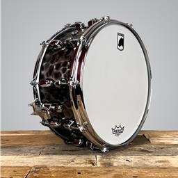 The Mapex Black Panther Persuader commands attention with its authoritative darkness and formidable punch. Crafted from a 1.2 mm hammered brass shell, this snare delivers a deep, dry tone that cuts through any mix. Its distinctive hammered finish not only enhances its sonic character but also gives it a striking visual appeal, making it a standout addition to any drum kit.