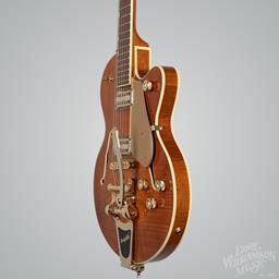 Gretsch Electromatic® LTD Flame Okoume Broadkaster® Jr. Single-Cut with Bigsby® – Roundup Orange Stain