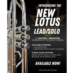The long-awaited Lotus production model is finally here - and trumpet players everywhere have reason to celebrate. This Lead/Solo trumpet is a lighter, brighter version of the iconic Solo model, featuring the same design cues and internal measurements of the handmade Lotus horns, but at a significantly more accessible price point.