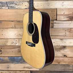 The Martin D-28 is widely regarded as the most iconic acoustic guitar in the world, trusted by generations of players and played by countless legends across genres. Its Dreadnought body size and scalloped bracing delivers the bold, projective tone with strong bass, clear trebles, and rich overtones that has defined acoustic music for nearly a century. Handcrafted with a solid spruce top and solid East Indian rosewood back and sides, the D-28 produces a resonant voice that’s beautifully balanced for all playing styles. The satin neck, featuring a Golden Era (GE) Modified Low Oval profile, high-performance taper, and 25.4" scale length, ensures smooth, effortless playability. With antique white binding, an ebony fingerboard with mother of pearl dot inlays, an ebony bridge with bone pins, and nickel open gear tuners, the D-28 blends timeless craftsmanship with modern playability. Available in a variety of gloss and satin options, the D-28 is the guitar you can trust to unleash the artist within.