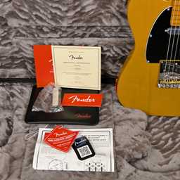 - Top-load/string-through Telecaster® bridge with compensated brass “bullet” saddles