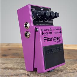 The BOSS BF-3 Flanger is the premier compact flanger pedal, building on the 20-year legacy of the BF-2 to give guitarists and bassists the thickest stereo flanging sounds ever. This stompbox is designed for players seeking incredibly deep and dimensional modulation, with sounds that seem to "swirl" around the listener. The BF-3 Flanger is an instant classic, delivering everything from subtle chorus-like settings to the famous "jet-jet" effect with ultra-low noise, all housed in the iconic, durable BOSS compact pedal form factor which is identifiable by its distinctive purple finish.
