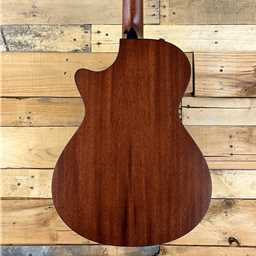 Taylor's 322ce acoustic-electric has everything you need and nothing you don't. The Grand Concert is slightly smaller that the Grand Auditorium and yields controlled overtones, so the sound won't occupy a lot of sonic space. It pairs well with both 14-fret and 12-fret neck-to-body construction, and offers an articulate voice with top-end chime. It's perfect for fingerstyle players and light strummers, though flatpickers are known to enjoy its tonal character too. The tropical mahogany top is known for a meaty midrange featuring a strong fundamental without adding a lot of ringing overtones. It responds well to players with a strong attack who like dry, earthy, lo-fi sounds. Other features include Taylor's V-Class bracing, Expression System 2 behind-the-saddle pickup and a 12-fret neck design. All 300 Series instruments ship in a deluxe hard shell case made by Taylor for optimal fit and protection.