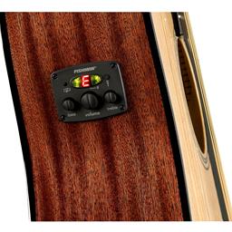 A Fishman pickup/preamp system adds peerless amplified performance with a variety of onboard controls to your acoustic instrument without compromising its pure, rich and resonant tone. The built-in tuner is conveniently placed right where you can see it, making it easy to keep your intonation right on the money.