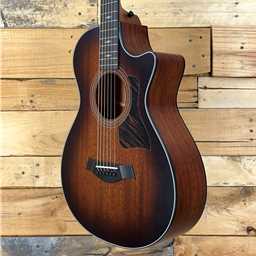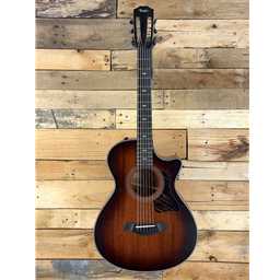 Taylor's 322ce acoustic-electric has everything you need and nothing you don't. The Grand Concert is slightly smaller that the Grand Auditorium and yields controlled overtones, so the sound won't occupy a lot of sonic space. It pairs well with both 14-fret and 12-fret neck-to-body construction, and offers an articulate voice with top-end chime. It's perfect for fingerstyle players and light strummers, though flatpickers are known to enjoy its tonal character too. The tropical mahogany top is known for a meaty midrange featuring a strong fundamental without adding a lot of ringing overtones. It responds well to players with a strong attack who like dry, earthy, lo-fi sounds. Other features include Taylor's V-Class bracing, Expression System 2 behind-the-saddle pickup and a 12-fret neck design. All 300 Series instruments ship in a deluxe hard shell case made by Taylor for optimal fit and protection.